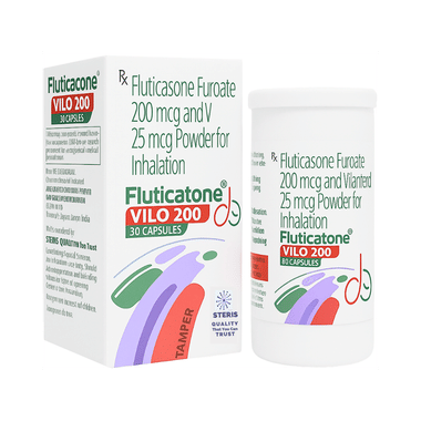 Fluticatone VILO 200 Capsule is a combination of two medicines that opens the airways and makes it easier to breathe. It is used in the treatment of asthma (wheezing and shortness of breath) and chronic obstructive pulmonary disorder (a lung disorder in which the flow of air to the lungs is blocked).