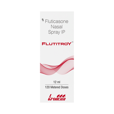Flutitroy Nasal Spray is a steroid. It relieves the symptoms of allergic rhinitis such as runny nose, sneezing and sinus discomfort. It works by blocking the production of certain chemical messengers that cause inflammation (swelling) and allergies, thus relieving the discomfort and irritation in your nose.