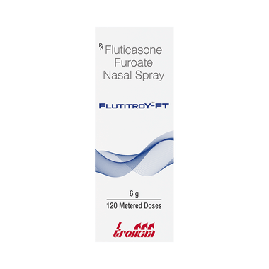 Flutitroy-FT Nasal Spray is a steroid. It relieves the symptoms of allergic rhinitis such as runny nose, sneezing and sinus discomfort. It works by blocking the production of certain chemical messengers that cause inflammation (swelling) and allergies, thus relieving the discomfort and irritation in your nose.