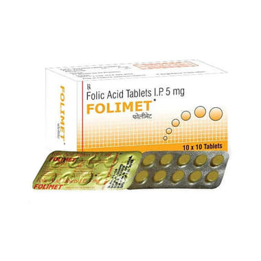 Usually, folic acid requirements are met from the diet and therefore additional supplements are not required. In general, Folimet 5mg Tablet is recommended only when you have a deficiency of folic acid. However, Folimet 5mg Tablet is advised to women who are pregnant and who want to conceive. The medicine should be taken at least 4 weeks before pregnancy and should continue its use up to 3 months of pregnancy. Consult your doctor if not sure.