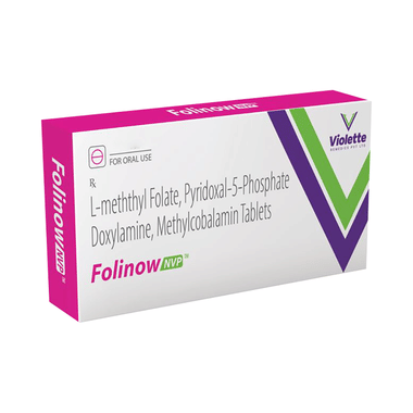 Folinow NVP Tablet has all active forms of vitamins which help in preventing neural tube defects, pregnancy-related anemia and associated complications of pregnancy due to elevated homocysteine levels. It should be used in the dose and duration as advised by the doctor. Check the label before use.