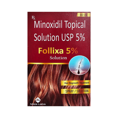Follixa 5% Solution should only be applied directly to the scalp area in the amount and in the way specified on the label or by your doctor. Immaculate and dry your scalp before using it. It may take approximately 2- 4 months to notice any hair growth. The first growth may be soft, colourless, and barely visible. Using more than recommended will not speed up hair growth and may increase the likelihood of side effects. This medication must be used continuously to maintain hair growth. Tell your doctor if your condition does not improve or worsen after using it for 4 to 6 months.