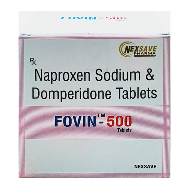 Fovin 500 Tablet is a combination of two medicines used to relieve migraine symptoms such as headache, nausea, and vomiting. Naproxen works by blocking chemical messengers responsible for pain and inflammation. Domperidone helps prevent nausea and vomiting by improving gut movement and acting on the brain’s vomiting center. Together, they provide effective relief from both headache and associated stomach discomfort during migraines.