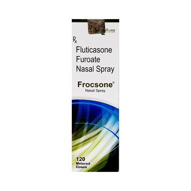 Frocsone Nasal Spray is a steroid. It relieves the symptoms of allergic rhinitis such as runny nose, sneezing and sinus discomfort. It works by blocking the production of certain chemical messengers that cause inflammation (swelling) and allergies, thus relieving the discomfort and irritation in your nose.