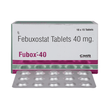 Fubox 40 Tablet is used to treat gout in adults. It is mainly used in patients who did not respond to the treatment with allopurinol or who are not able to take allopurinol. Gout is a type of arthritis in which uric acid, a naturally occurring substance in the body, builds up in the joints. It causes sudden attacks of redness, swelling, pain, and heat in one or more joints.