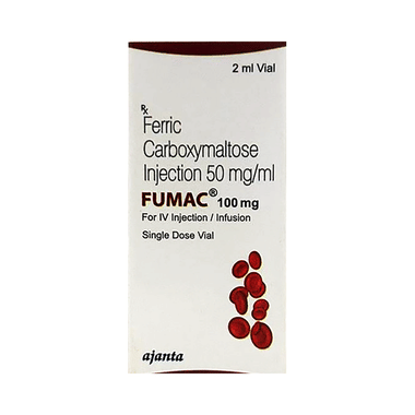Fumac 100 mg Injection is an iron replacement medicine. It is used to treat a type of anemia where you have fewer amount of red blood cells due to insufficient iron in your body (iron-deficiency anemia). Iron is needed to produce the red blood cells that carry oxygen around your body.