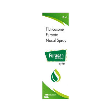 Furasan Nasal Spray is a steroid. It relieves the symptoms of allergic rhinitis such as runny nose, sneezing and sinus discomfort. It works by blocking the production of certain chemical messengers that cause inflammation (swelling) and allergies, thus relieving the discomfort and irritation in your nose.You should always use it as advised by your doctor but to get the full benefit you should take it regularly. It may take a few days for the spray to take full effect. If you do not see an improvement in your symptoms after a week you should talk to your doctor.