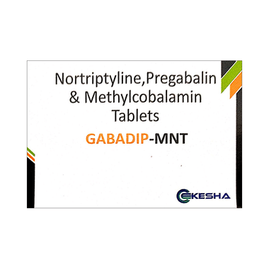 Gabadip-MNT Tablet is a combination of three medicines: pregabalin, nortriptyline, and methylcobalamin. This medicine is useful in the treatment of nerve pain (neuropathic pain). This medicine calms the damaged or overactive nerves by acting on brain, thereby decreasing the pain sensation. It also helps in the regeneration of damaged nerves in the body.