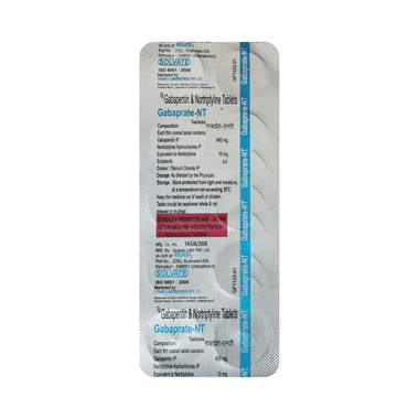Find out detailed description, uses, directions of use, side effects, warnings and precautions, frequently asked questions about Gabaprate NT 400mg/10mg Tablet