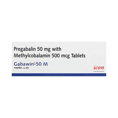 Gabawin 50 M Tablet is a combination of two medicines: pregabalin and methylcobalamin. It is used for the treatment of nerve pain (neuropathic pain). It calms the damaged or overactive nerves by acting on the brain, thereby decreasing the pain sensation. It also helps in the regeneration of damaged nerves in the body.