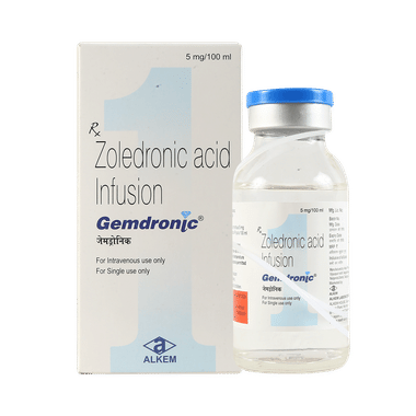 Gemdronic 5mg/100ml Injection works by increasing the density of the bones which helps in preventing osteoporosis. In addition to that, it helps to treat high calcium levels in the blood caused due to secondary bone cancer. Also, it is helpful in treating metastasis of bone which is caused due to breast cancer.
