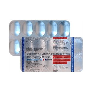 Geminor MS 50mg/2mg/1000mg Tablet is best taken with food; however, take this medicine regularly and at the same time each day to get maximum benefits. The dose and duration are decided according to your condition and how well you respond to it. The doctor may also monitor your blood sugar levels regularly when you are taking this combination medicine.
