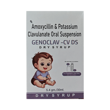 Genoclav-CV DS Dry Syrup is an antibiotic that helps your body fight infections caused by bacteria. It is used to treat infections of the lungs (e.g., pneumonia), the ear, the nasal sinus, the urinary tract, the skin, and the soft tissue. It will not work for viral infections such as the common cold.