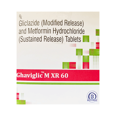 Ghaviglic M XR 60 Tablet belongs to a category of medicines known as anti-diabetic drugs. It is a combination of two medicines used to treat type 2 diabetes mellitus in adults. It helps control blood sugar levels in people with diabetes.