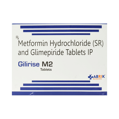 Gilirise M2 Tablet SR is a combination of two medicines: glimepiride and metformin. This medicine is used in the treatment of type 2 diabetes mellitus (DM). It improves blood glucose levels in adults when taken along with a proper diet and regular exercise. Glimepiride lowers the blood glucose levels by increasing the release of insulin from the pancreas. Metformin works by lowering glucose production in the liver and improving insulin sensitivity. This combination is not indicated for the treatment of type 1 DM.