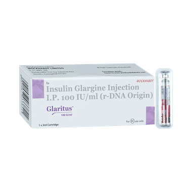 Glaritus Injection is a man-made insulin that is very similar to human insulin. It has a long and steady (constant) effect on blood sugar levels, lasting an entire day. This makes it suitable for use once daily. It treats type 2 diabetes mellitus in adults and type 1 diabetes mellitus in adults and children.