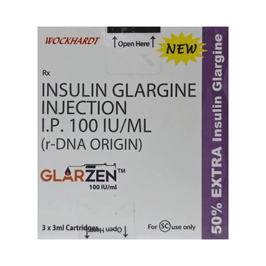 Glarzen Injection is a man-made insulin that is very similar to human insulin. It has a long and steady (constant) effect on blood sugar levels, lasting an entire day. This makes it suitable for use once daily. It treats type 2 diabetes mellitus in adults and type 1 diabetes mellitus in adults and children.
