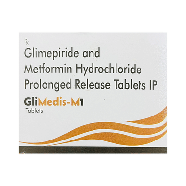 GliMedis-M1 Tablet PR is a combination of two medicines: glimepiride and metformin. This medicine is used in the treatment of type 2 diabetes mellitus (DM). It improves blood glucose levels in adults when taken along with a proper diet and regular exercise. Glimepiride lowers the blood glucose levels by increasing the release of insulin from the pancreas. Metformin works by lowering glucose production in the liver and improving insulin sensitivity. This combination is not indicated for the treatment of type 1 DM.