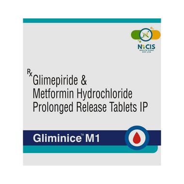 Gliminice M1 Tablet PR is a combination of two medicines: glimepiride and metformin. This medicine is used in the treatment of type 2 diabetes mellitus (DM). It improves blood glucose levels in adults when taken along with a proper diet and regular exercise. Glimepiride lowers the blood glucose levels by increasing the release of insulin from the pancreas. Metformin works by lowering glucose production in the liver and improving insulin sensitivity. This combination is not indicated for the treatment of type 1 DM.