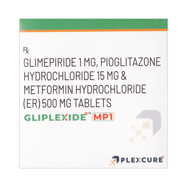 Composition: Glimepiride (1mg) + Metformin (500mg) + Pioglitazone (15mg)