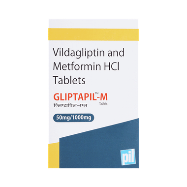 Gliptapil M 1000mg/50mg Tablet is a combination of two anti-diabetic drugs: metformin and vildagliptin. Metformin is an anti-diabetic medicine and belongs to the class of biguanides. It lowers the glucose production in the liver, delays glucose absorption from the intestines, and increases the body's sensitivity to insulin. Vildagliptin inhibits the enzyme DPP4 and increases the release of insulin from the pancreas. This combination is not advised for patients below 18 years of age.
