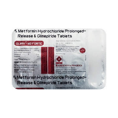 Gliriv-M 2 Forte Tablet PR is a combination of two medicines: glimepiride and metformin. This medicine is used in the treatment of type 2 diabetes mellitus (DM). It improves blood glucose levels in adults when taken along with a proper diet and regular exercise. Glimepiride lowers the blood glucose levels by increasing the release of insulin from the pancreas. Metformin works by lowering glucose production in the liver and improving insulin sensitivity. This combination is not indicated for the treatment of type 1 DM.