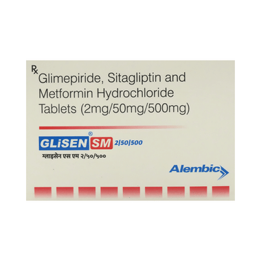 Glisen SM 2/50/500 Tablet is a combination of three medicines used to lower blood glucose levels in people with type 2 diabetes mellitus. It is generally prescribed when diet, exercise, and other treatments do not result in adequate glycemic control.Glisen SM 2/50/500 Tablet is best taken with food; however, take this medicine regularly and at the same time each day to get maximum benefits. The dose and duration are decided according to your condition and how well you respond to it. The doctor may also monitor your blood sugar levels regularly when you are taking this combination medicine.
