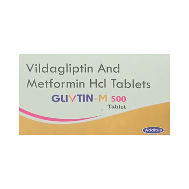 Glivtin-M 500 Tablet is a combination of two anti-diabetic drugs: metformin and vildagliptin. Metformin is an anti-diabetic medicine and belongs to the class of biguanides. It lowers the glucose production in the liver, delays glucose absorption from the intestines, and increases the body's sensitivity to insulin. Vildagliptin inhibits the enzyme DPP4 and increases the release of insulin from the pancreas. This combination is not advised for patients below 18 years of age.