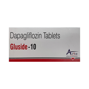 Gluside 10 Tablet is used to lower blood glucose levels in type 2 diabetes. In type 2 diabetes, the body is not able to use the produced insulin properly. This leads to an increase in the levels of sugar in your blood. Gluside 10 Tablet works by removing excess sugar from your body via your urine. In addition to that, it can also help prevent heart disease.
