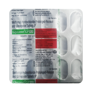 Glycomet-GP 0.5 Tablet PR is a combination of two medicines: glimepiride and metformin. This medicine is used in the treatment of type 2 diabetes mellitus (DM). It improves blood glucose levels in adults when taken along with a proper diet and regular exercise. Glimepiride lowers the blood glucose levels by increasing the release of insulin from the pancreas. Metformin works by lowering glucose production in the liver and improving insulin sensitivity. This combination is not indicated for the treatment of type 1 DM.