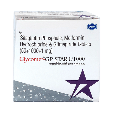 Find out detailed description, uses, directions of use, side effects, warnings and precautions, frequently asked questions about Glycomet-GP Star 1/1000 Tablet