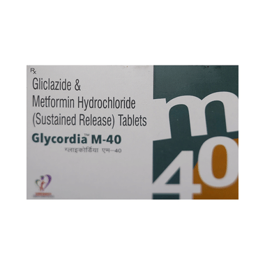Glycordia M 40 Tablet SR is a combination of two medicines: Gliclazide and Metformin. This medicine is used in the treatment of type 2 diabetes mellitus (DM). It improves blood glucose levels in adults when taken along with proper diet and regular exercise. Gliclazide lowers the blood glucose levels by increasing the release of insulin from the pancreas. Metformin works by lowering the glucose production in the liver and improving insulin sensitivity. This combination is not indicated for the treatment of Type 1 DM.