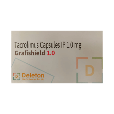 Grafishield 1.0 Capsule is used along with other medicines to prevent your body from rejecting a new organ (e.g., liver, kidney, or heart) after transplant. It does so by weakening your body’s immune system, so it does not attack the new organ. This medication belongs to a class of drugs known as immunosuppressants.