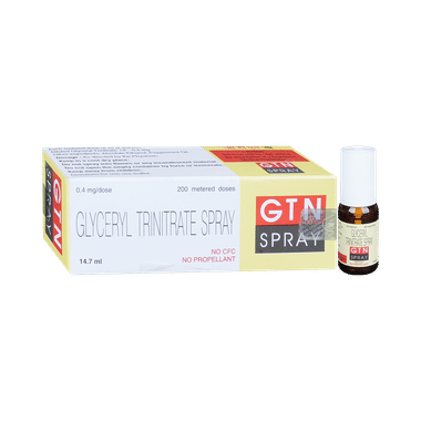GTN Spray is used to treat and prevent heart-related chest pain (angina). Angina occurs when the heart muscle is not getting enough blood. This medicine works by relaxing and widening blood vessels so blood can flow more easily to the heart. It has a very short-lived effect.GTN Spray should be taken at the first sign of chest pain. It should be used in the dose and duration as advised by your doctor. Perceivek medical help immediately if your chest pain continues for more than 15 minutes. Some people may be advised to use this medicine prior to any exertional activity or exercise, which may precipitate angina.
