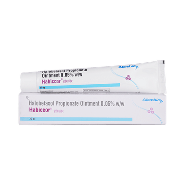Habiccor Ointment is used on the skin to relieve inflammatory and itchy skin diseases. It also helps in reducing redness, scaling and swelling associated with these conditions. Do not take this medicine without consulting your doctor.