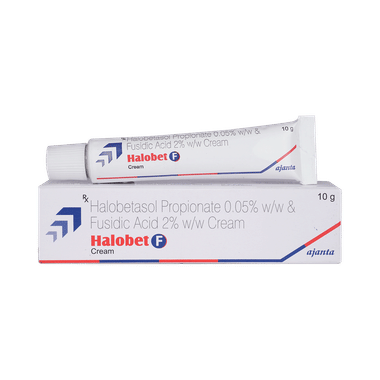Halobet F Cream is a combination medicine used in the treatment of skin infections. It works by killing the microorganisms that cause infection. It also blocks the release of certain chemical messengers that cause redness, swelling, and itching.Halobet F Cream is only meant for external use and should be used as advised by your doctor. You should normally wash and dry the affected area before applying a thin layer of the medicine. Avoid any contact with your eyes, nose, or mouth. Rinse it off with plenty of water in case of accidental contact. Avoid covering the treated area with airtight dressings such as bandages unless directed by a doctor.