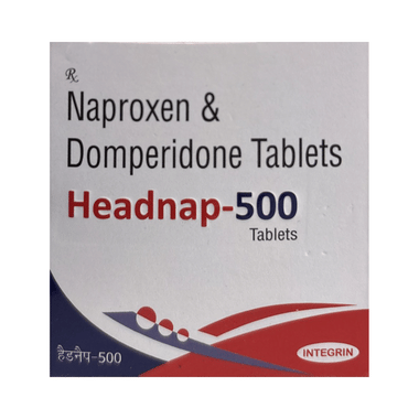 Headnap 500 Tablet is a combination of two medicines used to relieve migraine symptoms such as headache, nausea, and vomiting. Naproxen works by blocking chemical messengers responsible for pain and inflammation. Domperidone helps prevent nausea and vomiting by improving gut movement and acting on the brain’s vomiting center. Together, they provide effective relief from both headache and associated stomach discomfort during migraines.