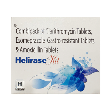 Helirase Kit is a prescription medicine. It is advised to take it as per the prescription. It should be taken in an empty stomach, but it must be taken at a fixed time to ensure better efficacy. Do not consume more than the recommended dose, as this may have harmful effects on your body. If you miss a dose, take it as soon as you remember. The treatment must be completed even if you feel better.