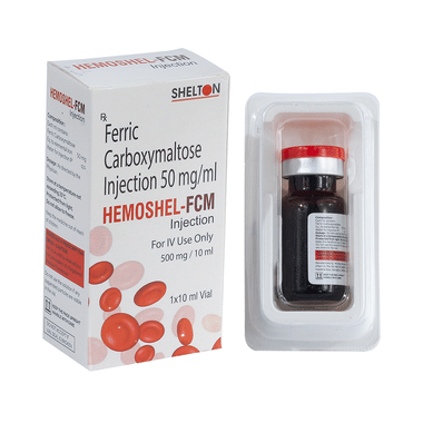 Hemoshel-FCM Injection is an iron replacement medicine. It is used to treat a type of anemia where you have fewer amount of red blood cells due to insufficient iron in your body (iron-deficiency anemia). Iron is needed to produce the red blood cells that carry oxygen around your body.