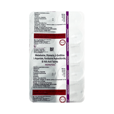 Composition: Metadoxine (500mg) + Silymarin (140mg) + L-Ornithine L-Aspartate (150mg) + Vitamin B6 (Pyridoxine) (3mg) + Folic Acid (1.5mg)