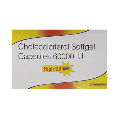 Take this medicine in the dose and duration as advised by your doctor. Swallow it as a whole. Do not chew, crush or break it. High D3 60K Softgel Capsule may be taken with or without food.Side Effects: