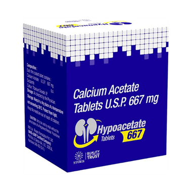 Hypoacetate 667 Tablet is a medicine used to treat high phosphate levels in the blood. It helps to lower the phosphate levels in the blood and prevents complications, particularly in people with kidney failure who are on dialysis and are unable to get rid of excess phosphate levels.