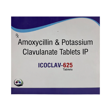Icoclav 625 Tablet is a combination of two medicines (amoxycillin and clavulanic acid) used to treat bacterial infections, such as tonsillitis, sinusitis, otitis media, respiratory tract infections, urinary tract infections, boils, abscesses, cellulitis, wound infection, bone infection, and oral cavity infections. The medicine works by killing the harmful bacteria that cause infections.
