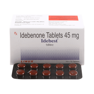 Idebest 45mg Tablet is a prescription medicine used to treat Friedreich's ataxia and vision impairment in patients with Leber’s hereditary optic neuropathy, an eye disorder that can lead to loss of eyesight. This way it helps in improving the lost eyesight.