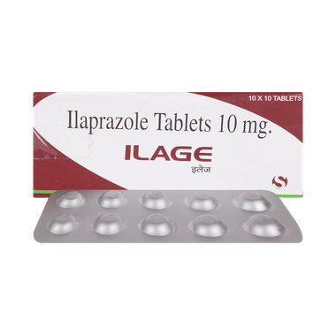 Ilage 10mg Tablet is used for the treatment of peptic ulcer disease, reflux esophagitis or gastroesophageal reflux disease (GERD). Ilage 10mg Tablet prevents acidity associated with use of painkillers. It is also used to treat a disease associated with excessive acid production in the stomach known as Zollinger Ellison syndrome (ZES). It works by reducing the amount of acid made by your stomach and thus relieves your symptoms.