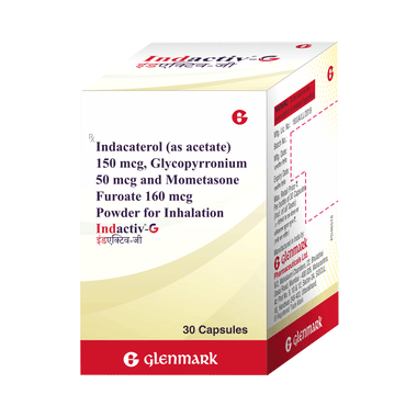 Indactiv-G Capsule is a combination of three medicines. It relieves the symptoms of uncontrolled asthma in adult patients. It also relieves inflammation (swelling) and relaxes the muscles in the airways, thereby making breathing easier.`Your doctor will tell you how often you need to use this medicine. The effect of this medicine may be noticeable after a few days but will only reach its maximum after a few weeks. This medicine must be used regularly to be effective, so keep taking it even if you don't have any symptoms; that means it’s working. If you stop taking it, your symptoms may get worse. This medicine should not be used to relieve sudden shortness of breath. If sudden shortness of breath occurs, use your rescue inhaler. To get the benefit from this medicine, make sure you get your inhaler technique right, otherwise, it won’t work.