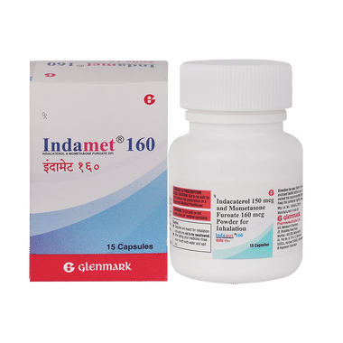 Indamet 160 Capsule is a combination of two medicines. It relieves the symptoms of uncontrolled asthma in adults and children aged above 12 years. It relieves inflammation (swelling) and relaxes the muscles in the airways, thereby making breathing easier.Your doctor will tell you how often you need to use this medicine. The effect of this medicine may be noticeable after a few days but will only reach its maximum after a few weeks. This medicine must be used regularly to be effective, so go on taking it even if you don't have any symptoms. That means it’s doing its job. If you stop taking it your symptoms may get worse. This medicine should not be used to relieve sudden shortness of breath. If sudden shortness of breath occurs, use your rescue inhaler. To get the benefit from this medicine you need to make sure you get your inhaler technique right, otherwise, it does not work as well.