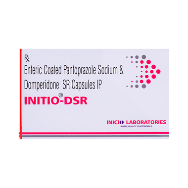 Initio-DSR Capsule is a prescription medicine used to treat gastroesophageal reflux disease (Acid reflux), dyspepsia (indigestion), and gastritis. It helps treat the conditions by reducing the amount of acid in the stomach thereby relieving symptoms of acidity such as heartburn, stomach pain, or irritation.