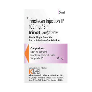 Find out detailed description, uses, directions of use, side effects, warnings and precautions, frequently asked questions about Irinot 100mg Injection