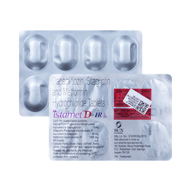 Istamet D 5/50/1000 IR Tablet is a combination medicine that helps control blood sugar levels. This medicine is used with diet and exercise to improve blood sugar control in adults with type 2 diabetes mellitus. It helps in the proper utilization of insulin, thereby lowering the blood sugar level.Istamet D 5/50/1000 IR Tablet can be taken with or without food at any time of the day, but try to take it at the same time every day. The dose will be decided by your doctor, so do not stop taking it without asking them. If you do, your blood sugar levels may increase your risk of serious complications like kidney damage and blindness. This medicine is only a part of the treatment program that should include a healthy diet, regular exercise, and weight reduction as advised by your doctor.